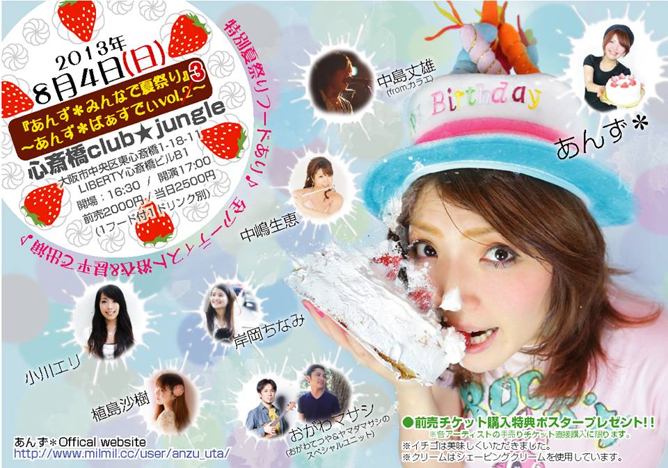 チケットご予約はお名前、日程、枚数明記の上from.anzu@gmail.comまで。 出演時間もお問い合わせください。