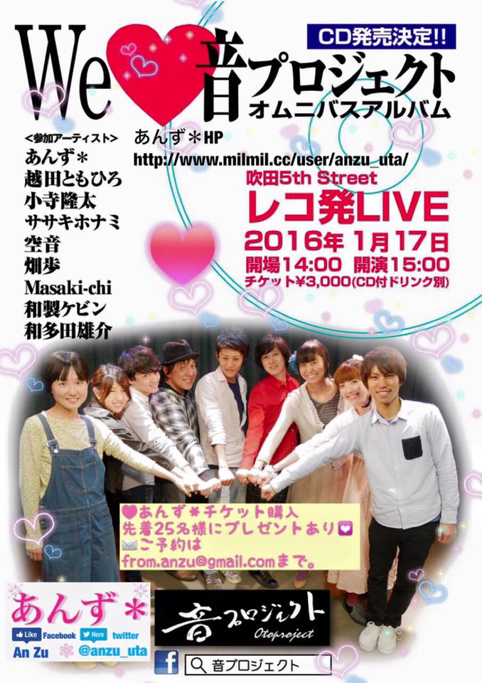 チケットご予約はお名前、日程、枚数明記の上from.anzu@gmail.comまで。 出演時間もお問い合わせください。